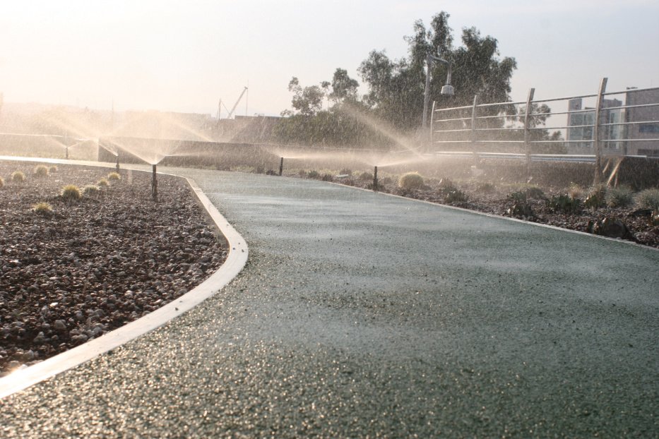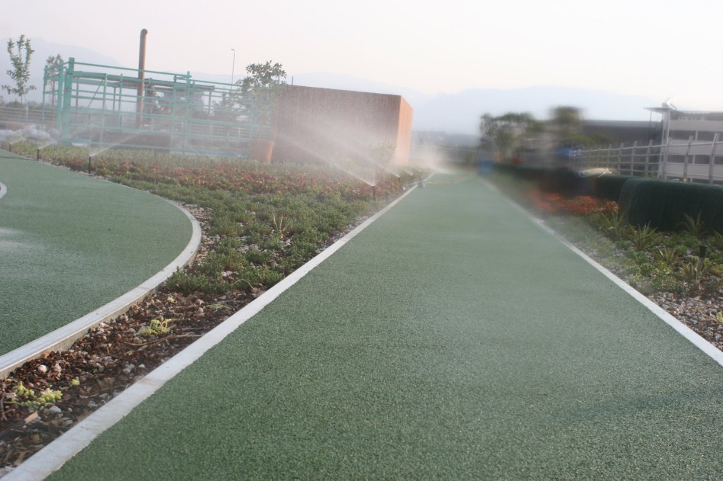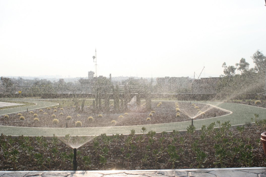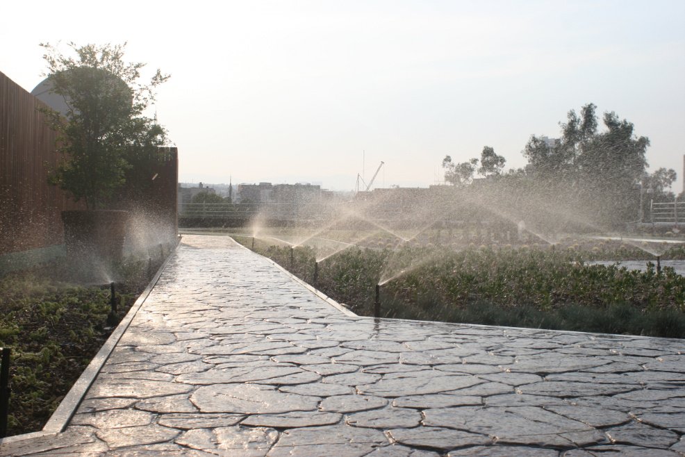 INFONAVIT: Sistema de riego automático por aspersión que irriga la
